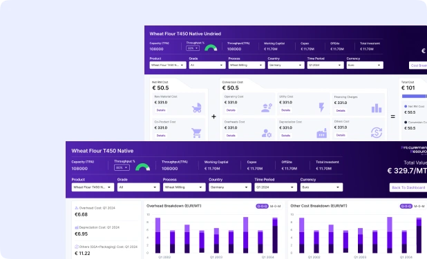 Our Digital Should Cost Models translate detailed production cost structures into live, usable tools. Built using validated raw material prices, utilities, labour, overheads, and regional inputs, these models allow teams to test scenarios, benchmark suppliers, and support negotiations with clear, transparent cost logic that updates as market conditions change.